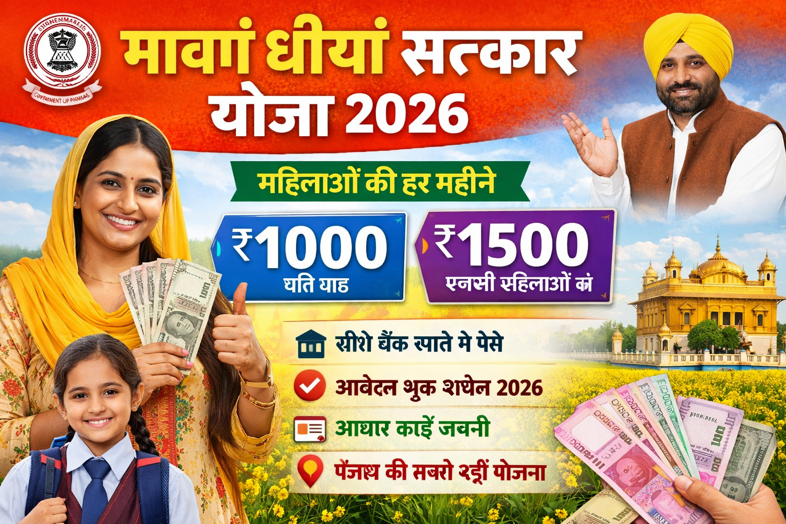 👩👧 मुख्यमंत्री मावां धीयां सत्कार योजना (Punjab) — Full Details 2026 यह पंजाब सरकार की नई 2026 की सबसे बड़ी महिला सहायता योजना है, जिसमें महिलाओं को हर महीने सीधे पैसे दिए जाएंगे।नीचे पूरी और अपडेट जानकारी आसान भाषा में 👇 📌 योजना क्या है? मुख्यमंत्री मावां धीयां सत्कार योजना पंजाब सरकार द्वारा शुरू की … Read more